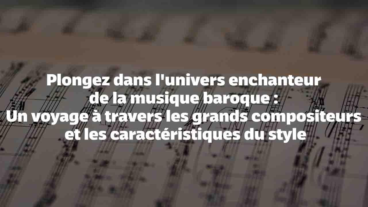 La musique baroque a donné naissance à un héritage musical riche et diversifié. Les grands compositeurs de cette époque ont laissé derrière eux des œuvres d'une beauté et d'une expressivité sans égales. Leur musique continue d'inspirer les générations futures et de captiver les auditeurs du monde entier. Que vous soyez un passionné de musique classique ou un néophyte curieux, plongez dans l'univers enchanteur de la musique baroque et laissez-vous emporter par sa puissance émotionnelle et son raffinement artistique.